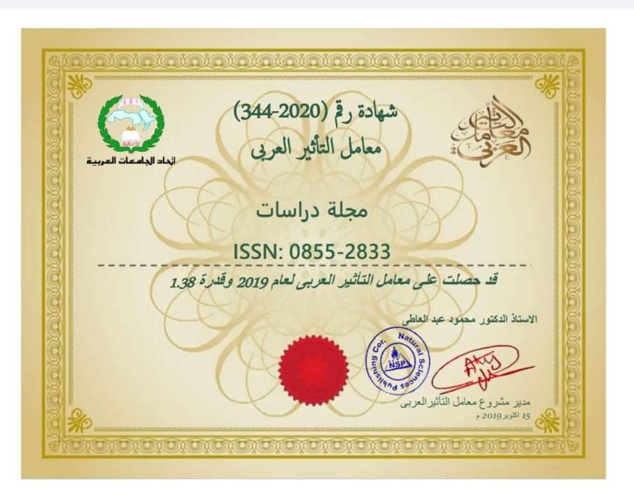 وجاء ذلك إبان التصنيف الذي يضعه الباحثين عبر العالم على درجة استعمال المجلات، وتعد هذه المجلة ‘دراسات’ المجلة الوحيدة المصنفة من لدن الهيئة المشرفة على معامل التأثير العربي،والذي ترشحت له 980مجلة خلال السنة الجارية 2019 حيث فازت من بينها 465 مجلة.