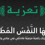 بسم الله الرحمان الرحيم (يَا أَيَّتُهَا النَّفْسُ الْمُطْمَئِنَّةُ * ارْجِعِي إِلَى رَبِّكِ رَاضِيَةً مَرْضِيَّةً * فَادْخُلِي فِي عِبَادِي * وَادْخُلِي جَنَّتِي) صدق الله العظيم.