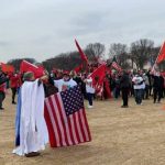 وتوقف العديد من المتظاهرين من جميع الأعمار أمام نصب جورج واشنطن التذكاري وقلعة سميثسونيان لترديد النشيد الوطني والأغاني الوطنية ومنها “صوت الحسن”.