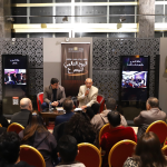 وتضمن برنامج الحفل أيضا توقيع كتاب “رهانات الإخراج المسرحي بالمغرب” الذي جمع بين دفتيه مداخلات أشغال الندوة الفكرية لمهرجان المسرح الوطني بتطوان عام 2023 بتنسيق من عصام اليوسفي ومحمود الشاهدي. كما شمل البرنامج قراءة رسالة اليوم العالمي للمسرح التي كتبها المخرج اليوناني ثيودوروس تيزوبولوس، وتلتها الفنانة نورا الصقلي.