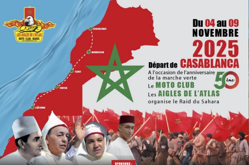 نادي نسور الأطلس ينظم مسيرة وطنية بالدراجات النارية تخليداً للذكرى الخمسين للمسيرة الخضراء