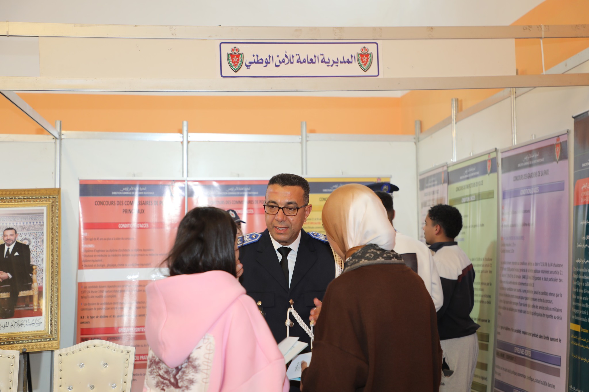 وهكذا، احتضنت القاعة المغطاة بثانوية أبي القاسم الزياني التأهيلية أروقة للعارضين، إلى جانب فضاءات تواصلية لمصالح الأمن الوطني والوقاية المدنية، التي قدمت شروحات حول شروط ومساطر الولوج إلى مختلف أسلاكها.