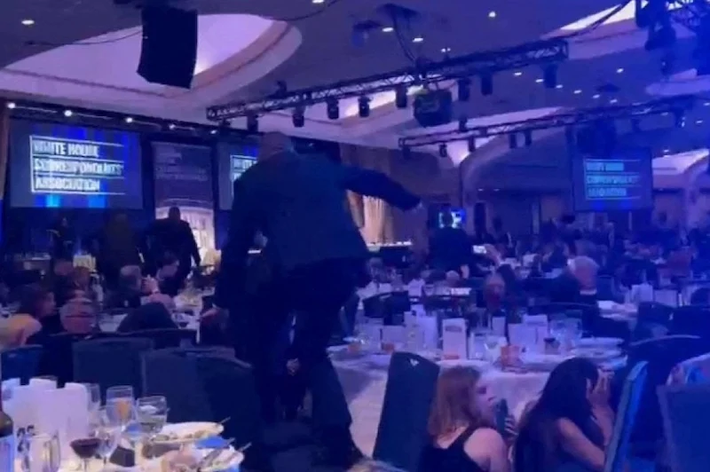 وتمركز عناصر الأمن حول الطاولات؛ بينما كانت الأطباق تتساقط على أرضية قاعة الاحتفالات الضخمة في فندق هيلتون واشنطن، وهو الفندق نفسه الذي نجا فيه الرئيس رونالد ريغان من محاولة اغتيال قبل 45 عاما.
