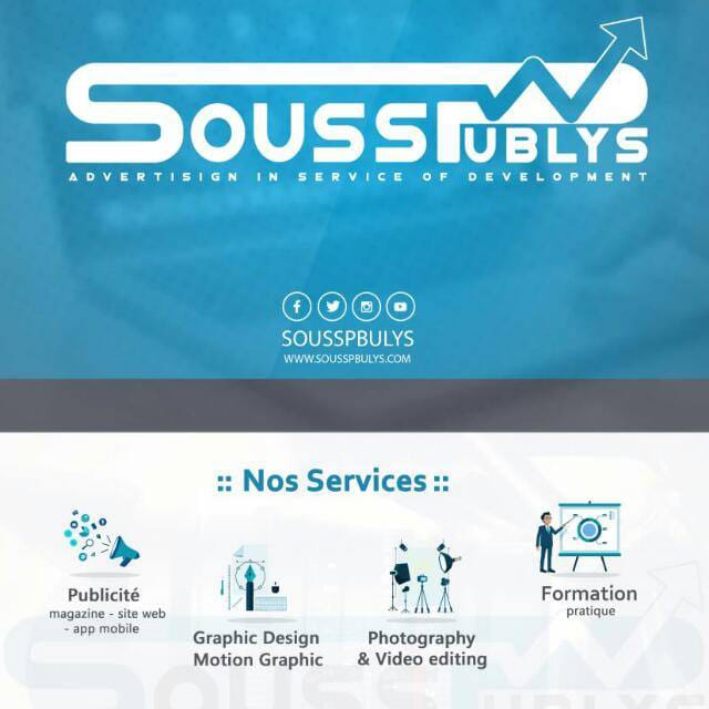 تعتمد شركة Sousspublys زاوية جديدة لرؤية الإشهار بطريقة إبداعية، وذلك من بالإرتكاز على تنويع الوسائط إشهارية :