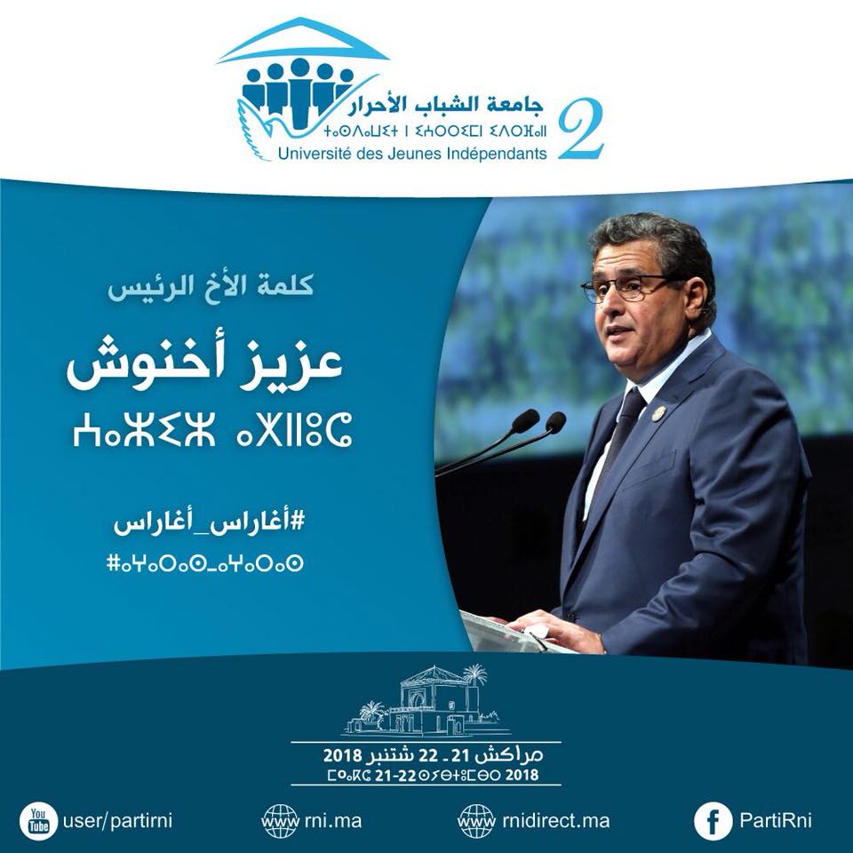 وسيفتتح أشغال الجلسة الافتتاحية لهذا الملتقى الشبابي الهام، رئيس حزب التجمع الوطني للأحرار الاخ “عزيز اخنوش ” يوم الجمعة 21 شتنبر بداية من الساعة السادسة والنصف مساءً .