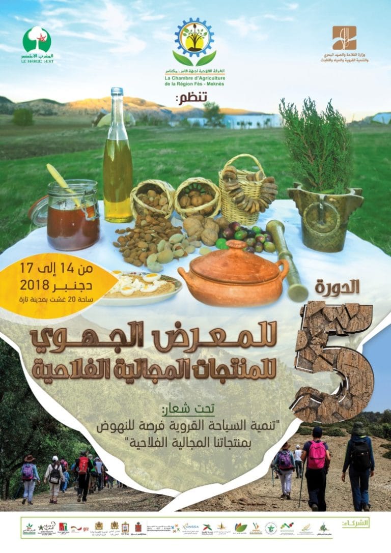 و يأتي تنظيم هذا المعرض الجهوي للمنتجات المجالية الفلاحية من طرف الغرفة الفلاحية لجهة فاس مكناس وذلك بشراكة مع جهة فاس مكناس، عمالة إقليم تازة، جماعة تازة، المديرية الجهوية للفلاحة لجهة فاس مكناس، المديرية الجهوية للمكتب الوطني للاستشارة الفلاحية لجهة فاس- مكناس، المديرية الجهوية للمكتب الوطني للسلامة الصحية للمنتجات الغذائية لجهة فاس- مكناس، المدرسة الوطنية للفلاحة بمكناس، وكالة التنمية الفلاحية، مكتب تنمية التعاون، المركز الجهوي للبحث الزراعي بمكناس، المديرية الجهوية للمياه و الغابات ومحاربة التصحر لجهة الشمال الشرقي، الوكالة الألمانية للتعاون الدولي، المندوبية الجهوية للسياحة لجهة فاس مكناس، قطاع الصناعة التقليدية بتازة، المديرية الإقليمية لوزارة التربية الوطنية بتازة، المجلس العلمي المحلي بالمدينة و مجموعة القرض الفلاحي، المعرض الجهوي والذي سيتم تنظيمه يأتي في  دورته الخامسة  من  14 إلى 17 دجنبر 2018 بعدما تم إصدار بلاغ توصلت “تاونات نت” بنسخة منه ،  المعرض الجهوي ينظم بدورته الخامسة تحت شعار ” المنتجات المجالية الفلاحية تنمية السياحة القروية فرصة للنهوض بمنتجاتنا المجالية الفلاحية ”، وذلك  بساحة 20 غشت بمدينة تازة، بحضور كل من جامعة الغرف الفلاحية و الغرفة الفلاحية لجهة مراكش آسفي كضيفي شرف.