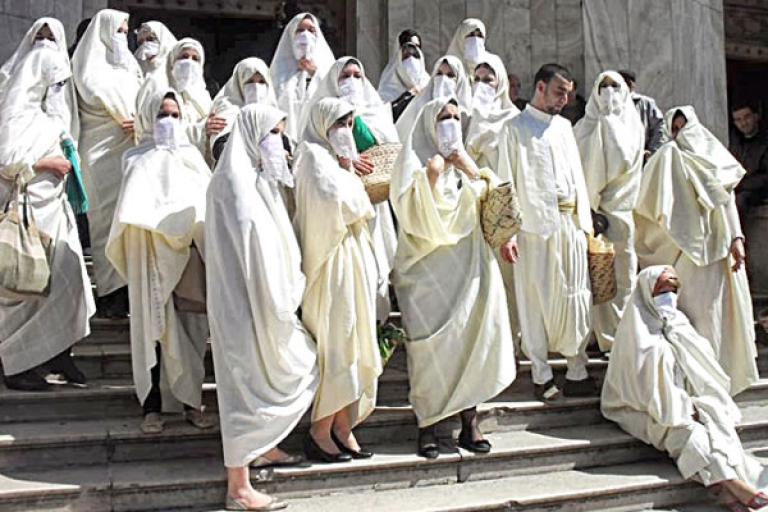 وجدة (المغرب)- استعرضت المغربيات في نهاية الأسبوع، لباسهن التقليدي المتمثل في اللثام والحايك المغربي بأهم شوارع مدينة وجدة، استجابة لدعوة أطلقها نشطاء على مواقع التواصل الاجتماعي تحت شعار “الرجوع إلى الأصل فضيلة”، طالبوا من خلاله برفع التحدي والخروج إلى الشوارع والساحات العمومية بـ”الحايك الوجدي” واللباس التقليدي المغربي.