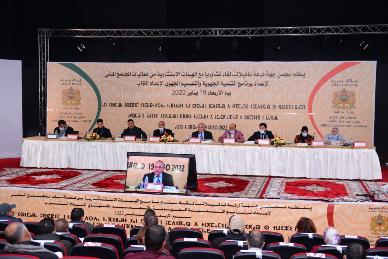 مجلس جهة درعة تافيلالت يعقد لقاء تشاوريا مع الهيئات الاستشارية المحدثة لديه من فعاليات المجتمع المدني لإعداد برنامج التنمية الجهوية والتصميم الجهوي لإعداد التراب