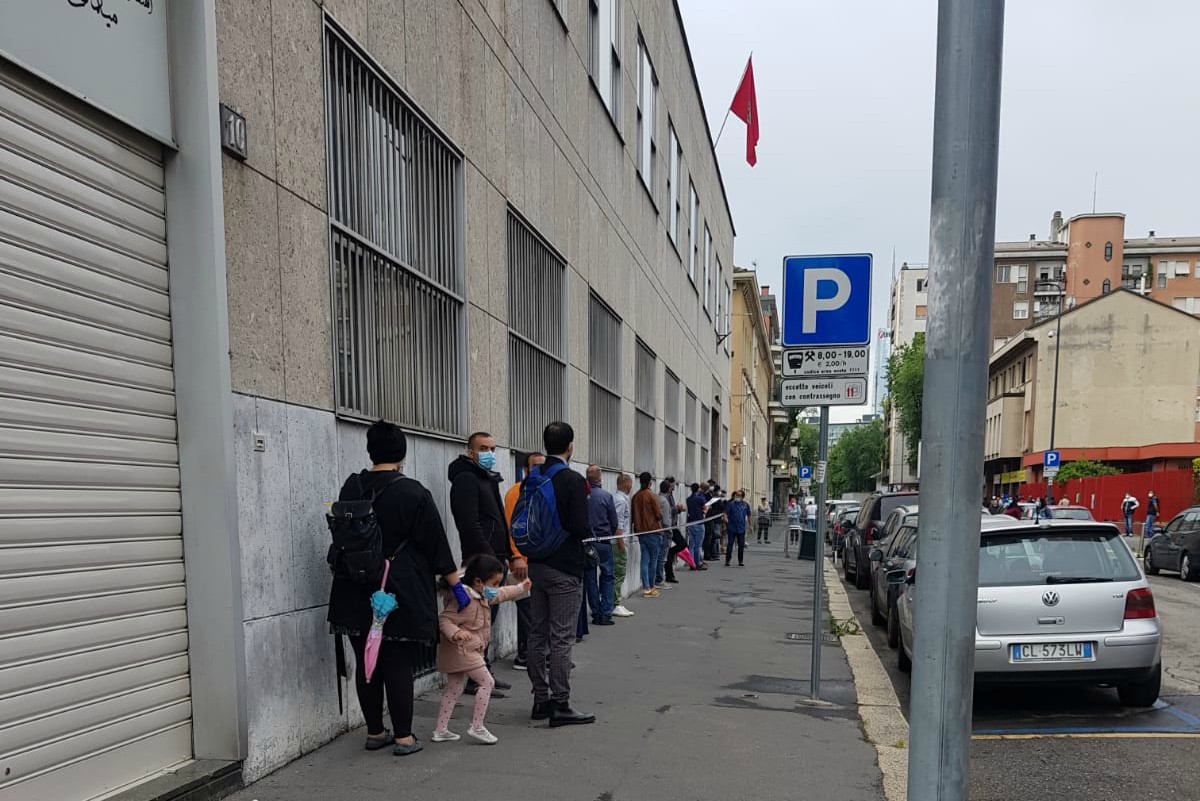 إيطاليا .. بالديسكو مواطن إيطالي يشبه قوائم الإنتظار أمام مقر قنصلية المغرب بميلانو